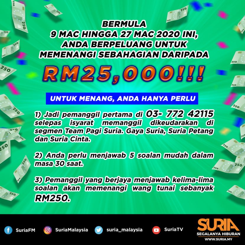 Peraduan Menang Wang Tunai 2018 : Peraduan sertai & menang p.o.. Sebab lebih banyak keuntungan yang bisa anda dapatkan hanya dengan bermain disana. Pemenang minggu 3, wang tunai rm100 x 10. .memaklumkan memenangi peraduan bernilai rm3,300 sebelum diminta memasukkan wang pada hari sama, bagi mencukupkan nilai pada cek disediakan mangsa mula berasa curiga dan sedar ditipu apabila suspek berterusan memintanya membuat pindahan wang, katanya dalam kenyataan. Ketua jabatan siasatan jenayah komersial kedah, superintendan elias omar, berkata wanita berusia 25 tahun itu. Semua hadiah berupa wang tunai rm200 akan diproses dalam tempoh tiga bulan selepas tempoh peraduan tamat.
