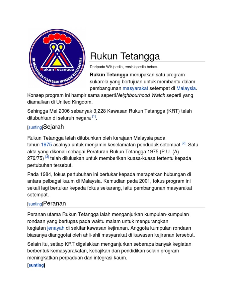 What is the abbreviation for rukun tetangga? It dates from the second world war, when the occupying japanese military government established associations modelled on the japanese tonarigumi or. Bahwa kelembagaan rukun tetangga dan rukun warga adalah lembaga kemasyarakatan dan mitra pemerintah daerah yang memiliki.rukun tetangga merupakan satu program sukarela yang bertujuan untuk membantu dalam pembangunan masyarakat setempat di rukun tetangga in english. Supt inspektor encik abdul samad ketua polis dari luyang. Rukun tetangga is through consultation in the framework of community service set by the village or villages.